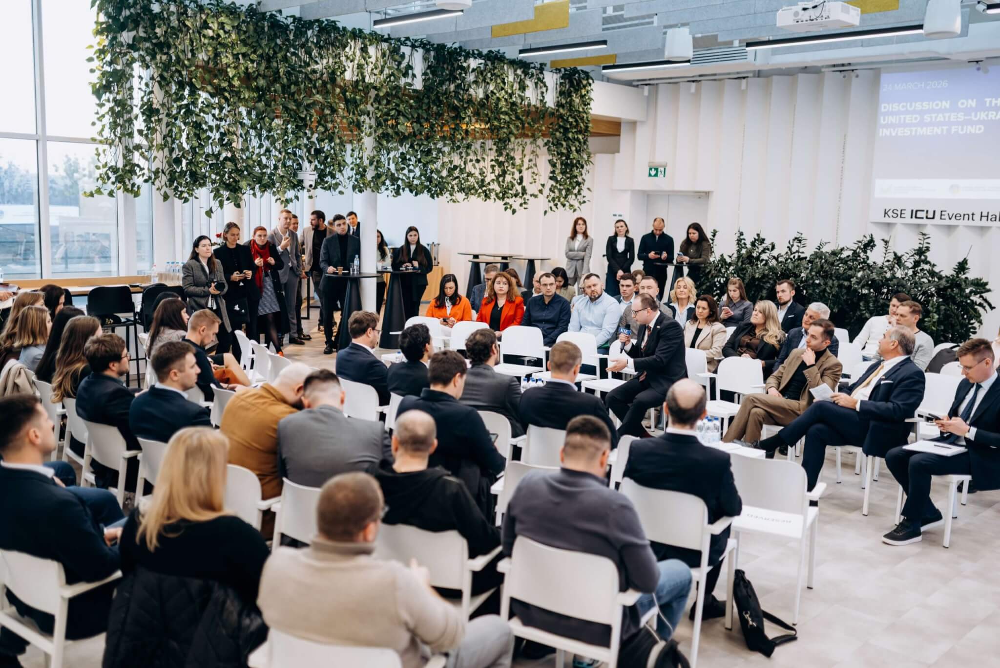 At the end of March, the Kyiv School of Economics hosted a joint event organized by the Ministry of Economy, Environment, and Agriculture of Ukraine and the KSE Institute, dedicated to the activities of the U.S.-Ukraine Reconstruction Investment Fund (URIF). Participants discussed project selection, investment criteria, and financing mechanisms for Ukraine’s recovery. Representatives of around 100 key institutions and private companies attended the event.