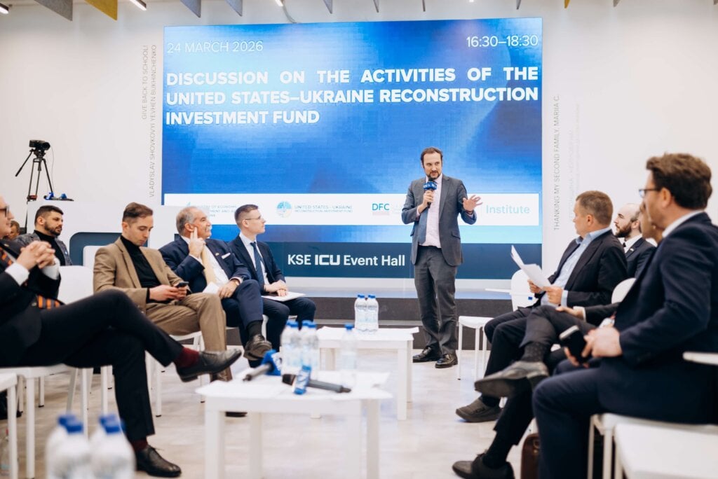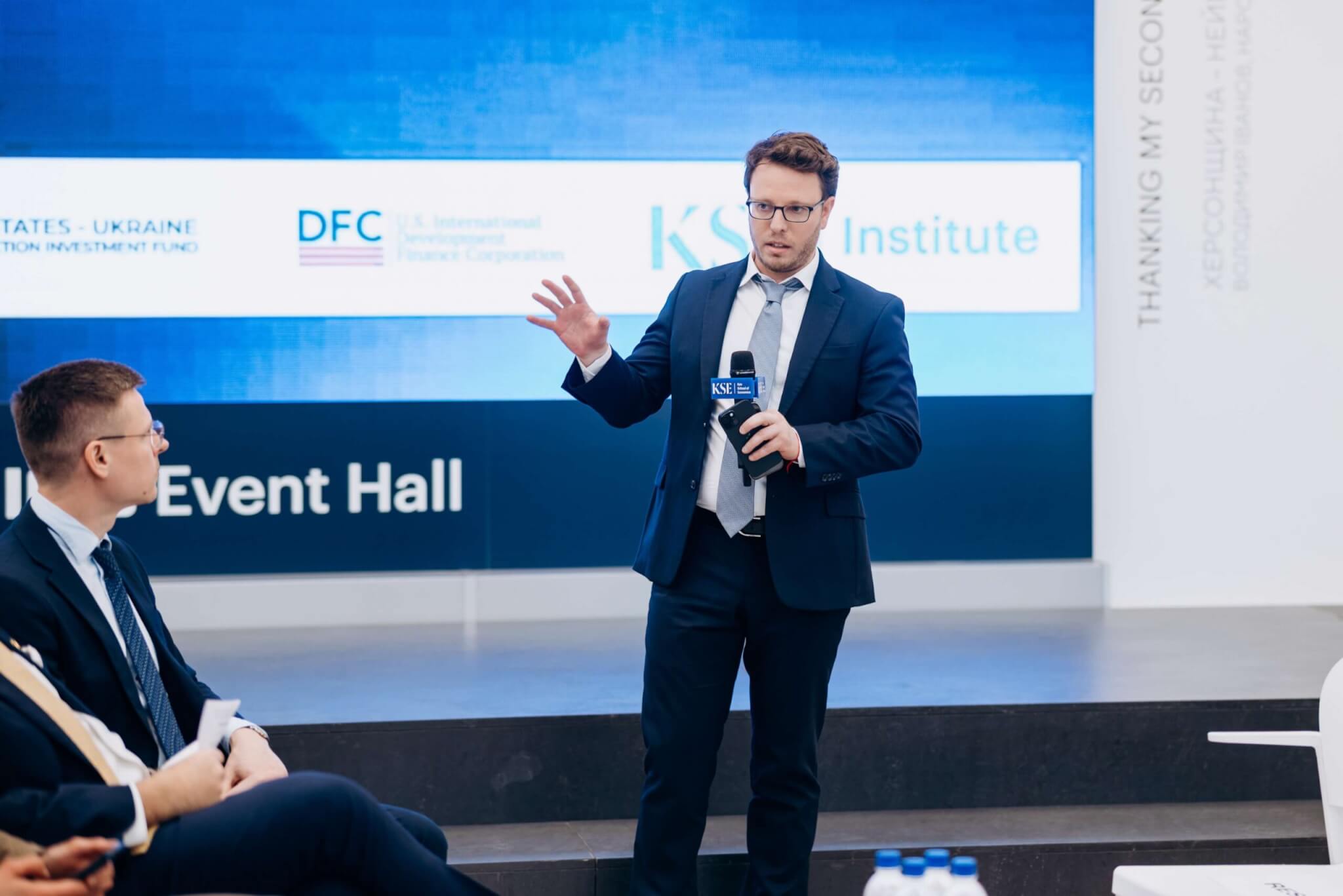 Speakers included Deputy Minister of Economy, Environment, and Agriculture of Ukraine Yehor Perelyhin, Associate General Counsel at the U.S. Development Finance Corporation (DFC) Jonathan Taylor, DFC Investment Director Zain Shamim, and DFC Ukraine Country Officer Tony Pollak. The president of the Kyiv School of Economics, Tymofiy Mylovanov, opened and moderated the discussion.