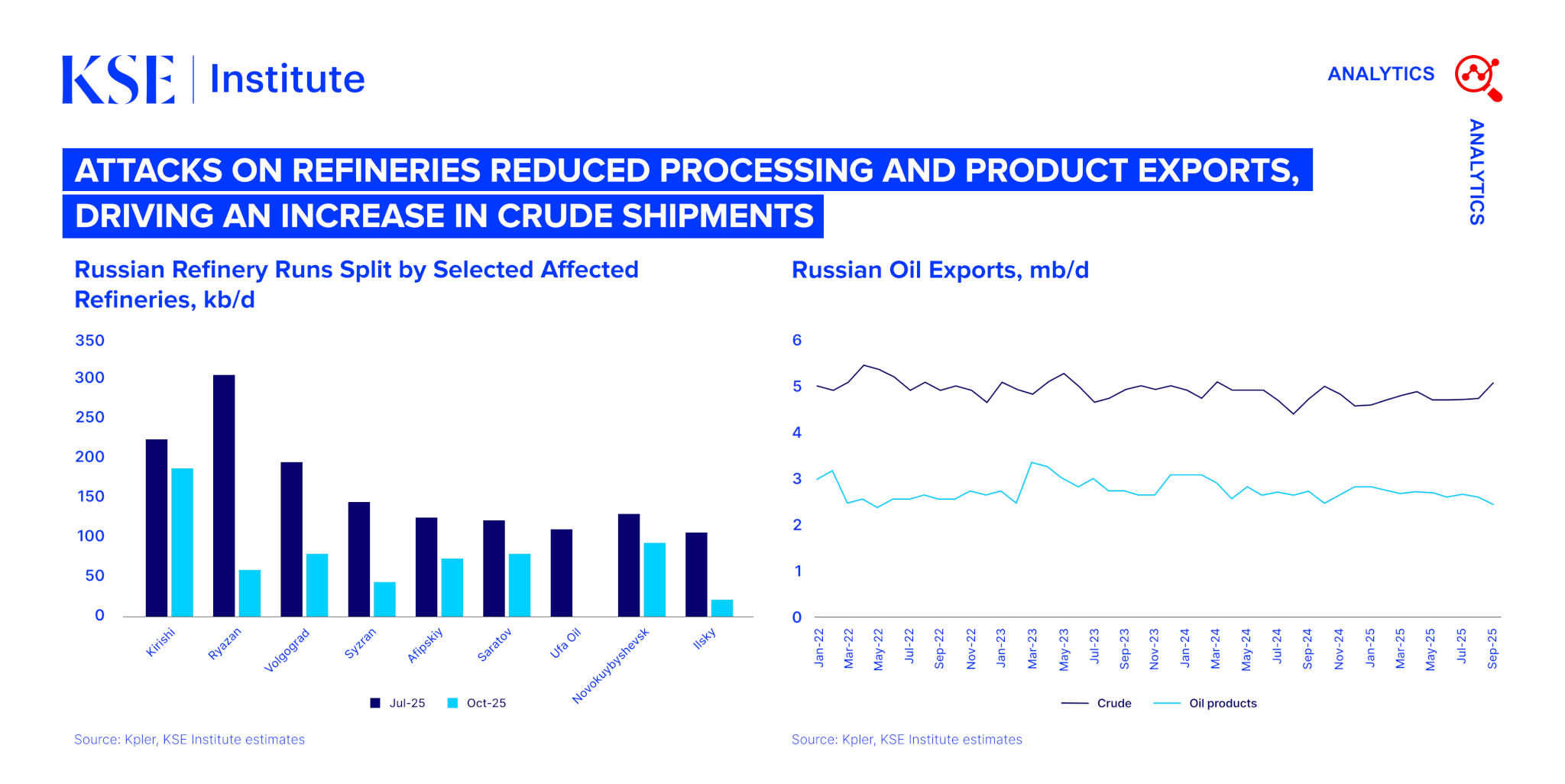 - Russian Oil Tracker – October 2025: Attacks on Refineries Reduced Processing and Product Exports, Driving an Increase in Crude Shipments